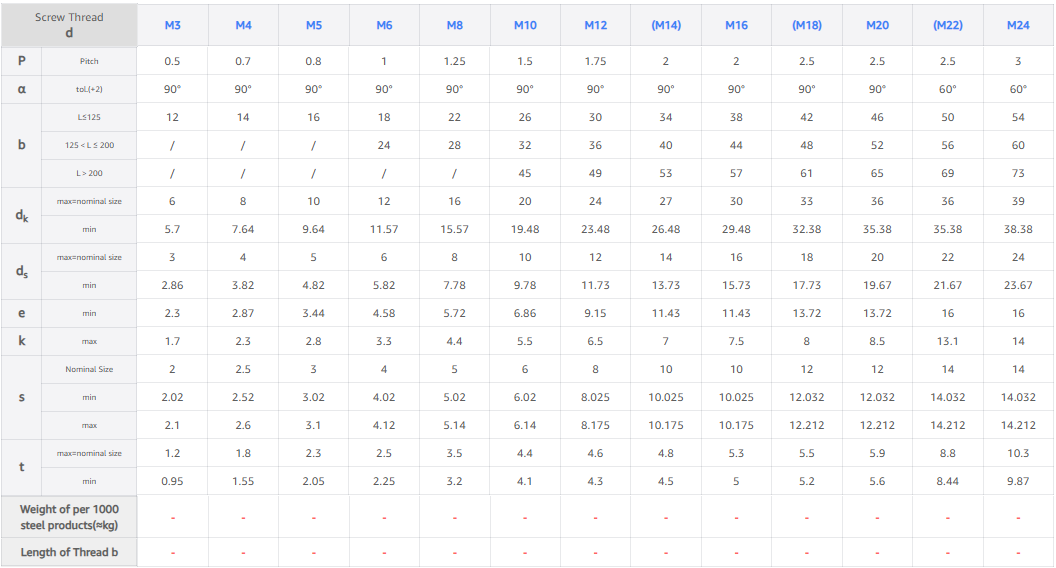 | Size | M3-M24 ,We can make it as your request |